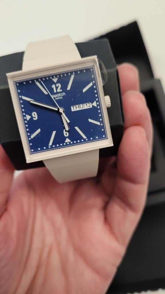 - SWATCH NIEUWE DAMESHORLOGESwatch nieuwe dameshorloge. Beige met blauwe wijzerplaat . Winkelprijs 110 euro. Bieden vanaf 60euro. Is nieuw en nog niet gedragen. Mijn vriendin is kort na dit cadeau overleden. :-(Ophalen
