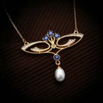 9 apr 26TopadvertentieCatawikiHeel België - Sans prix de réserve - Collier Argent Saphir - DiamantNouvelle pendant en argent pour femmes avec une pierre principale en saphir ronde totalisant 1,35 ct, entourée de 17 diamants naturels totalisant 0,12 ct, et une perle d’eau douce cultivée de 7 mm; poNieuw