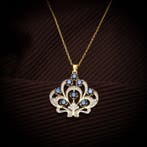 - Sans prix de réserve - Collier Argent Saphir - DiamantPendentif en argent 925 serti d'un saphir rond de 2,65 ct entouré de huit diamants naturels (0,10 ct au total), poids total 4,5 g, dimensions environ 38 x 32 mm et longueur de collier environ 45 cNieuw