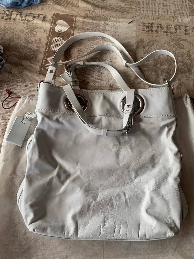 - Italiaanse dameshandtas LuanaItaliaanse dameshandtas luana kleur wit / schouderriem echt leder binnenkant afgewerkt met zijde nooit gebruikt heeft altijd in een zak in de kast gelegen daardoor leder beetje gekreukt afhalenNieuw Ophalen