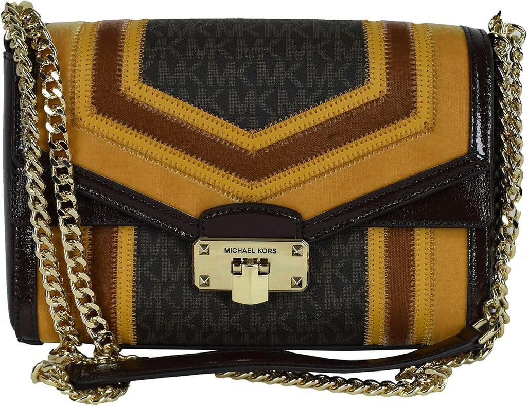 - NWT Michael Kors Kinsley Middelgrote schoudertas met schoudeNwt michael kors kinsley medium schouderflap crossbody marigold meerkleurig vintage 25 cm x 16 cmNieuw Ophalen of Verzenden
