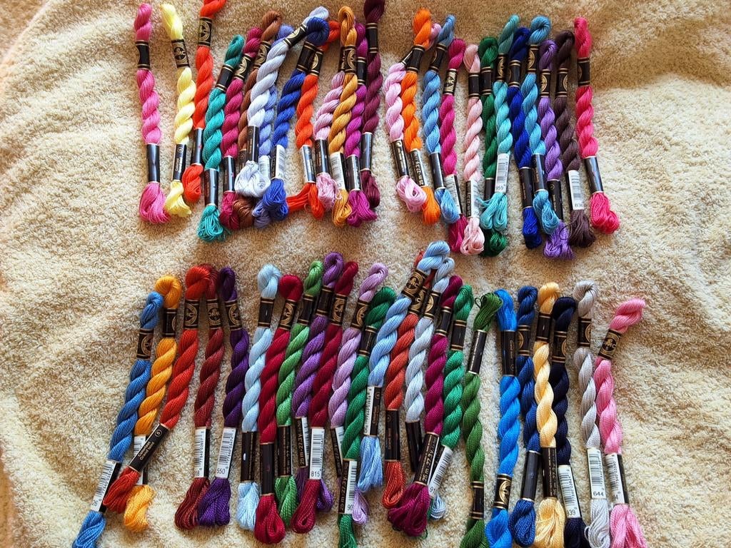 23 mrt 26merivaRoux - 100 strengen DMC100 strengen dmc borduurgaren, zowel zwart label als andere. 20 Verschillende kleuren waarvan telkens 5 per kleur.Nieuw Ophalen of Verzenden