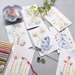 Voor aquarelverf heb je speciaal aquarelpapier nodig dat vaak gemaakt is van 100% katoen of cellulose. Dit papier is dik en kan goed water opnemen zonder te vervormen. Dikte en textuur kunnen variëren, dus je kunt experimenteren met glad, gestructureerd of grof papier om te zien welke resultaten jij het mooist vindt.