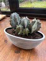 Je kunt een cactus meestal om de 2 tot 3 jaar verpotten. Dit hangt echter ook af van de groei van de plant; als je ziet dat de cactus te groot wordt voor zijn pot of als de wortels uit de drainagegaten komen, is het tijd om te verpotten. Gebruik verse potgrond die goed doorlatend is, zodat je cactus gezond blijft.