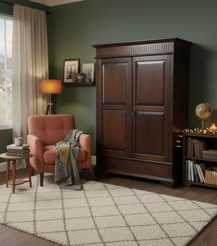 - Armoire/penderie en teck massif - fabrication artisanaleJe déménage et vends cette armoire/penderie en teck massif achetée à bali à un ébéniste spécialisé dans le travail du teck à la main. Meuble unique avec un côté étagères et un côté penderie + 1 tiroirOphalen