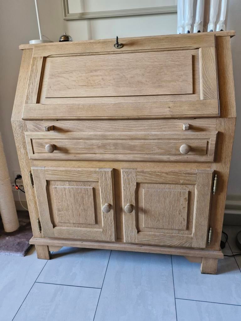 - Secretaire meubeltje in eik.Secretaire in eik. De staat is gebruikt. 96 Cm hoog, 108 cm breed, 38 cm diep. Reeds gezandstraald.Gebruikt Ophalen