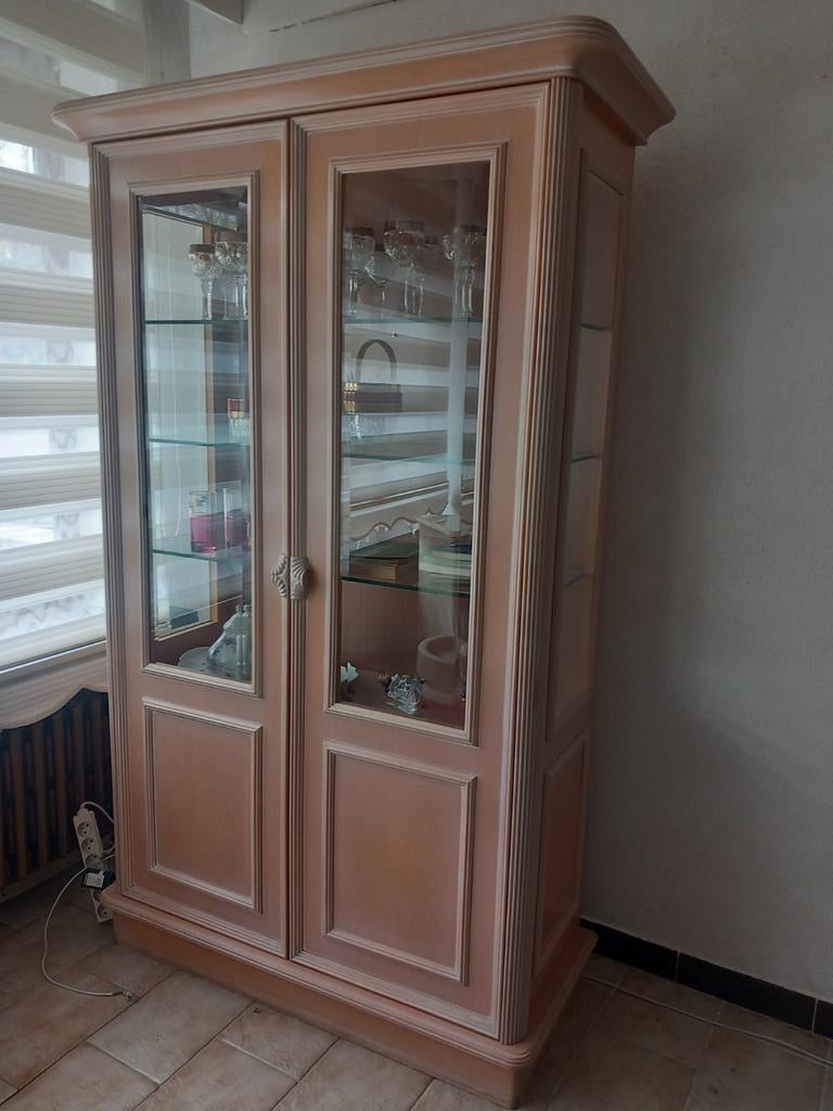 EergisterenKimNazareth - Vitrine of boekenkastEen mooie vitrine of boekenkast . Bovenaan 2 deuren met glas . Onderaan 2 deuren met 2 lade’s. Heel mooi om kleine spullen of verzamel objecten in te etaleren. De kast bestaat uit 2 delen en is gemakkGebruikt Ophalen