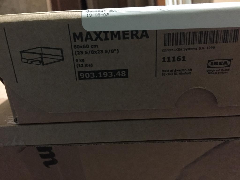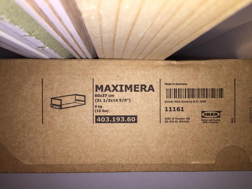 - Ikea Maximera lade 80x37Maximera lade, hoog, wit, 80x37 cm 403.193.60 Nieuw, in ongeopende doos nieuwprijs 62€ vraagprijs 30€Nieuw Ophalen