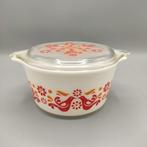 Retro vintage jaren ‘40, ‘50 en 60 (vanaf 1945 tot 1968) pyrex glas geschikt voor zowel oven als koelkast decor in primaire kleuren geel, groen, rood en blauw 1x gele kom (ø 27cm) 1x groen kom (ø 22,5