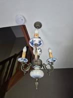 8 mrt 26volvoEvergem - Kroonluchter messing en Delfts blauw + 2 wandlampenPrachtig hand geschilderde delfts blauwe kroonluster met 8 messing armen. 2 Bijpassende wandlampen. Gesigneerd heeft in kasteel gehangen opnieuw op te poetsenGebruikt Ophalen