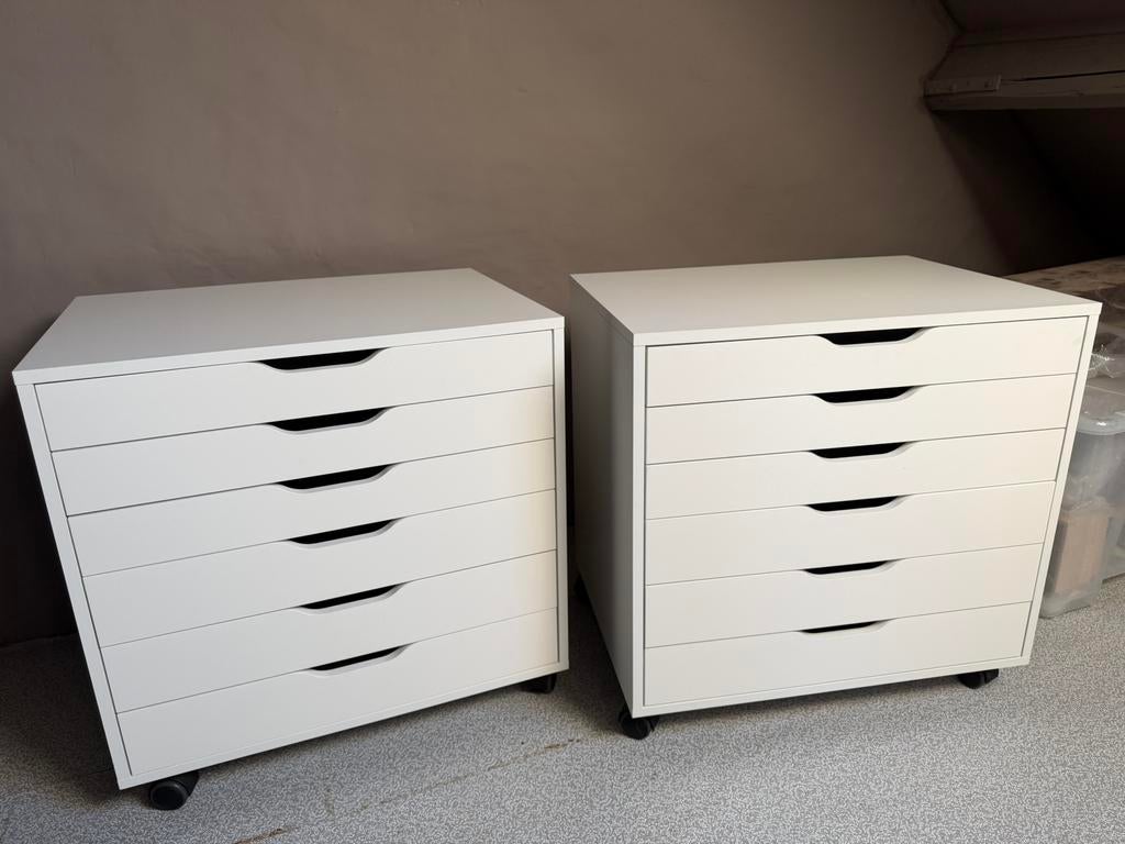 - 2 x Ikea ALEX Ladeblok op wielen2 x ikea alex ladeblok / ladekast op wielen zie foto’s voor afmetingen zo goed als nieuw, er heeft altijd folie in de lades gelegen dus geen schade prijs voor de 2 stuksZo goed als nieuw Ophalen