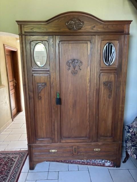 - vestiairekastPrachtige klassieke vestiairekast in volle eik met hoedenplank, hoogte 252 cm, breedte 162 cm, diepte 54 cm, in perfecte staat. Niet demonteerbaar.Zo goed als nieuw Ophalen