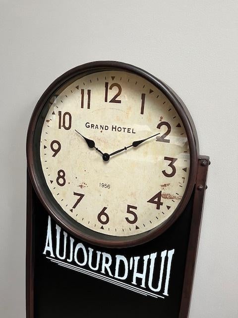 - Krijtbord landelijk met geïntegreerde klokCharmant landelijk krijtbord met een geïntegreerde klok, perfect voor het noteren van boodschappen of herinneringen. De klok werkt op batterijen en heeft een klassieke uitstraling. Afmetingen zijn teOphalen of Verzenden