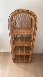 Je kunt een rieten rekje op verschillende manieren stylen. Plaats het bijvoorbeeld naast een zithoek en vul het met boeken, planten of kleine decoratieve items. Je kunt ook een paar mooie kaarsen of een stijlvolle vaas bovenop het rekje zetten. Experimenteer met verschillende hoogtes en groottes om een speels effect te creëren. Geef het rekje karakter door het in te vullen met spullen die jouw persoonlijkheid weerspiegelen.