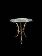 13 apr 26Topadvertentie123rookkanaalHeel België - Almerich - Bijzettafel - Verguld messingAlmerich ronde hollywood regency-stijl bijzettafel, circa jaren 1980, met een driepoots goudkleurige messing basis met hoefvoeten en koppen ram, en een dik helder glazen blad; in goede staat met lichtNieuw