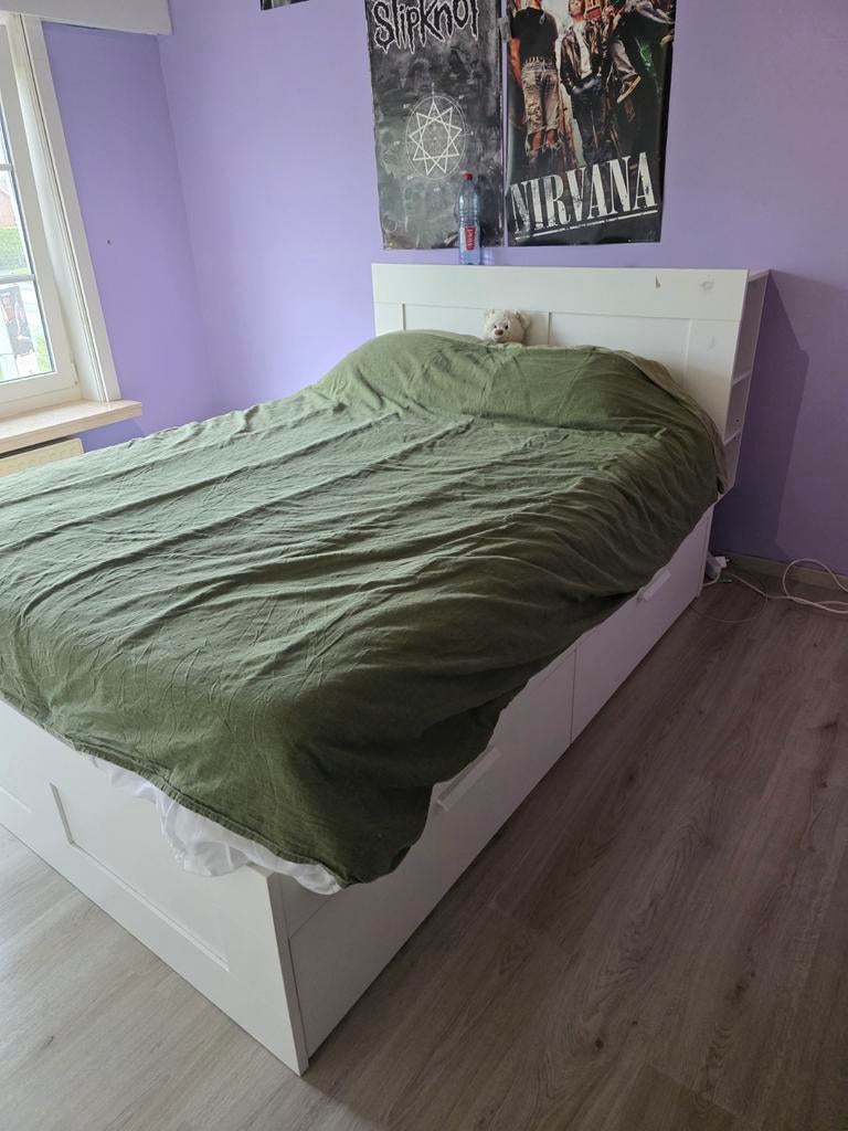- SlaapkamerBed met lattenbodem plus kleerkast ,bed is 1m46 breed ,2m37 lang met achterbouw die 1m10 is .kleerkast is 1m17 lang ,1m90 hoog en 50cm breed .er zijn wat beschadigingen (zie foto's) van stickers aOphalen