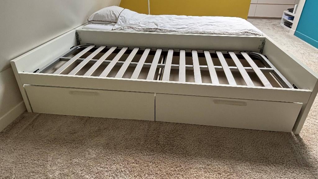 2 apr 26Veronique GlorieuxMenen - 2 bedden van 90x200 met opbergruimte — als nieuw — DRINGENDIk verkoop 2 identieke bedden van het ellinge-model 90x200 met opbergruimte, al gemonteerd. ✔️ Gekocht in januari (3 maanden) ✔️ onberispelijke staat, als nieuw ✔️ bedbodem inbegrepen + opbergdoos (zeNieuw Ophalen Eenpersoons