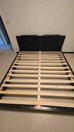 - TweepersoonsbedI zwart bedframe, hout met leren kussens, met lattenbodem, zonder matrias, afmetingen: 160×200.Ophalen of Verzenden