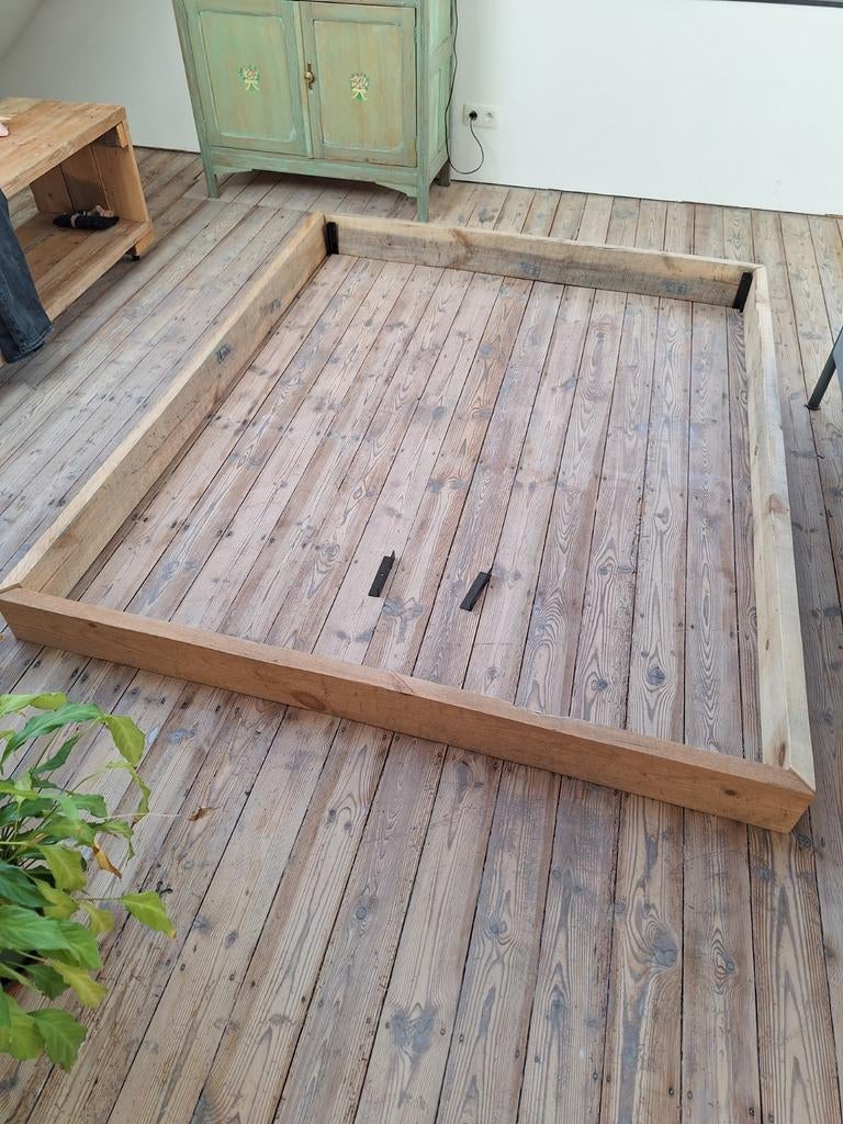 - Kader voor bedBedkader voor bed van 1m60 x 2m in steigerhout hier passen juist 2 lattenbodems van 80cm tussen.Gebruikt Ophalen Tweepersoons