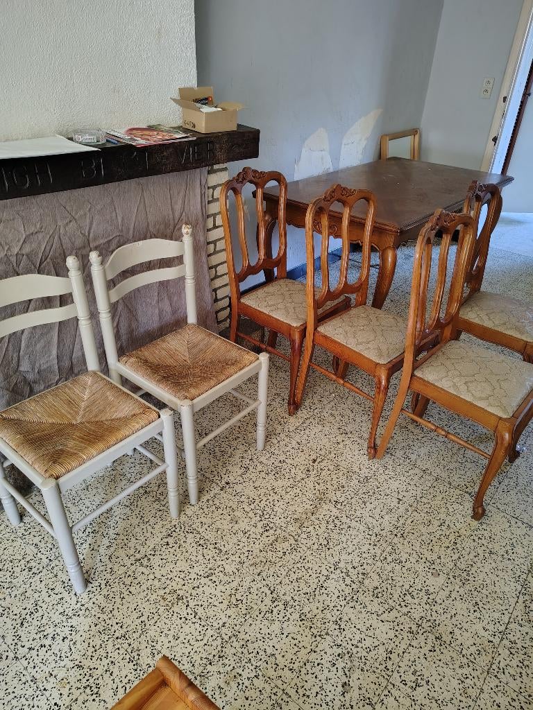 13 feb 26shooterKoksijde - stoelen en lederen zetel6 eiken stoelen met rieten zitting, goede staat 50 € 6 eiken stoelen met groene stoffen zitting, goede staat 50 € 6 houten stoelen met stoffen leuningen en geveerde zitting 25 € mogeGebruikt Ophalen