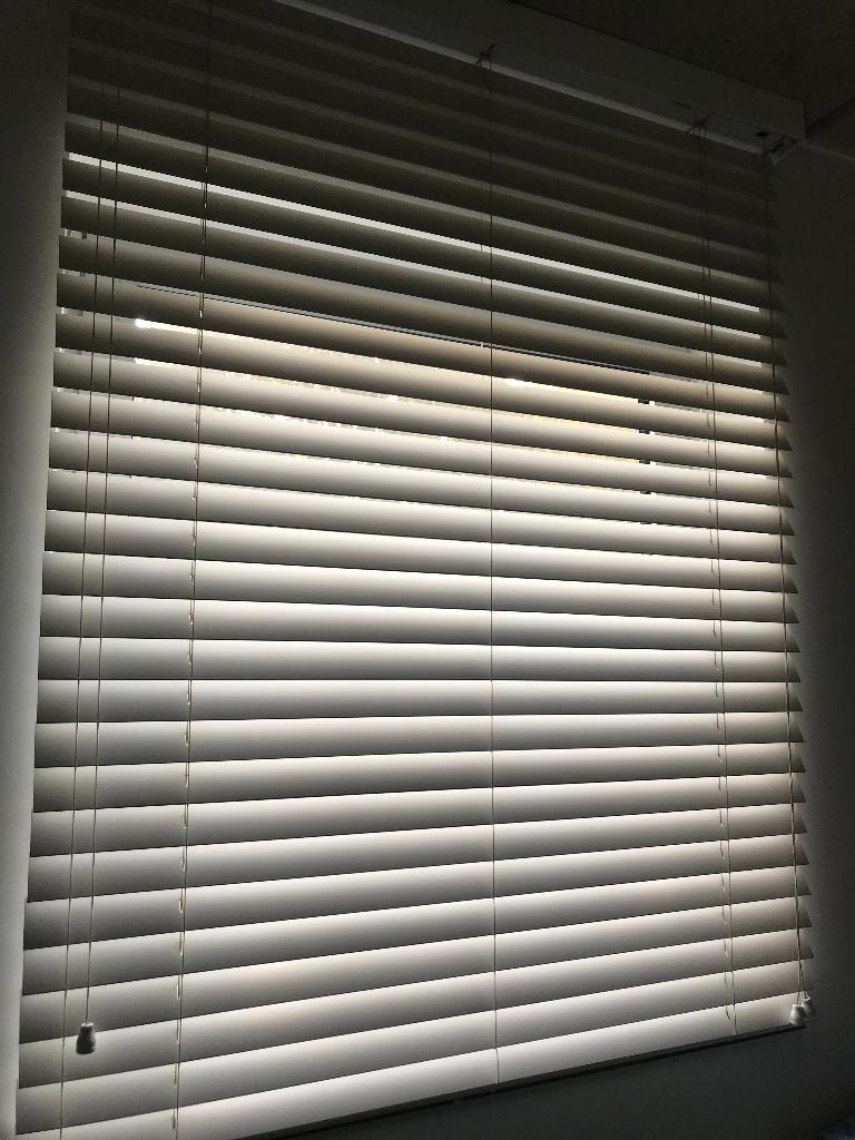 - RAAMDECORATIE HOUTEN LAMELLEN MASSIEF HOUTHouten lamellen met ladderkoordjes, afsluitlat en montagemateriaal in zeer goede staat - 103 cm breed x 245 cm hoog kleur : taupe - de latten zijn 50 mm x 3 mmZo goed als nieuw Ophalen