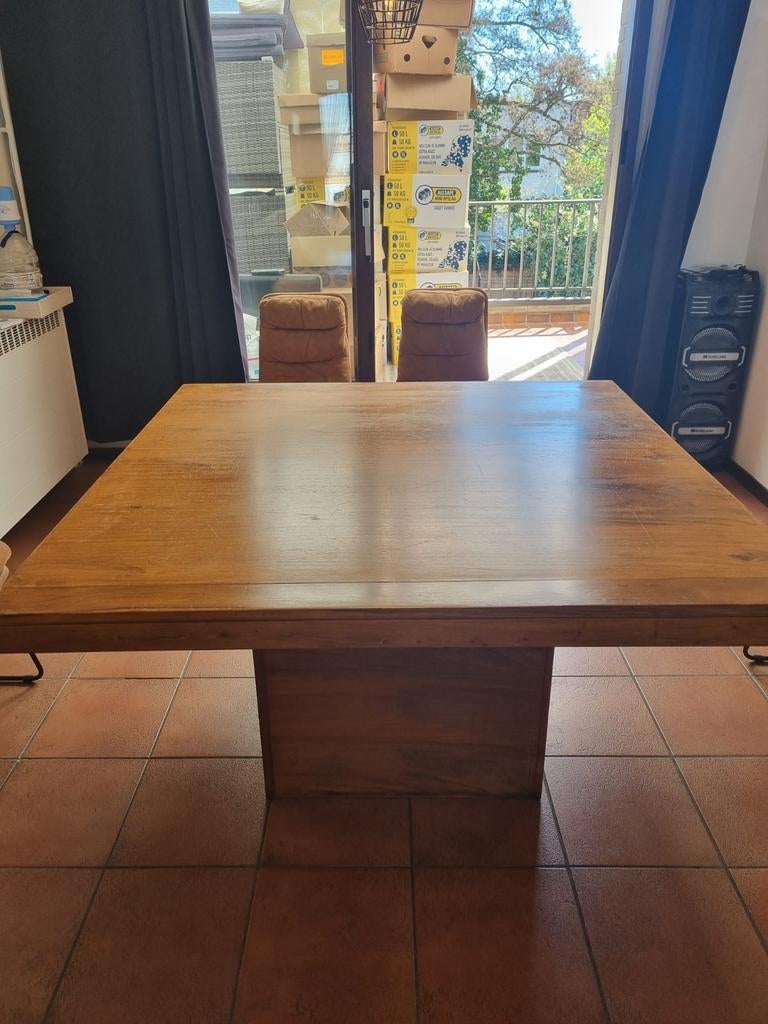 18 mrt 26Justine GoegebeurZomergem - Massieve teak tafelMassieve teak tafel vierkant 160 x 160. Tafel voor 8 personen. In hele goede staat.Gebruikt Ophalen Vijf personen of meer