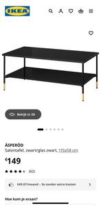 - Salontafel Ikea zwart + glasSalontafel ikea 115x58 nieuw: 149 euro omwille van verhuis staat salontafel nog ingepakt in bubbelpapier. Kleine kras reeds voor verhuis.Zo goed als nieuw Ophalen