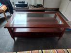 Salontafel in hout. Lengte 120 cm, breedte 60 cm en hoogte 45 cm. Op te halen in oostende. Geen koerierdiensten.