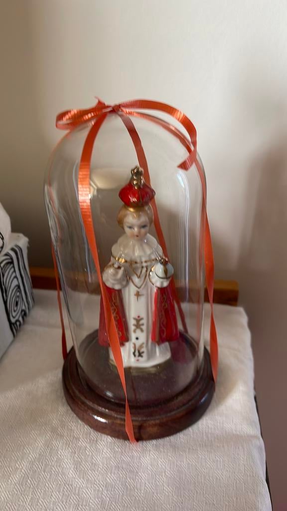 - Heiligenbeeldje onder stolpHeiligenbeeldje hoogte 16 cm diameter stolp 10 cm opm lintje is enkel om op te bergen en stolp op plaats te houden in prima ongeschonden staatZo goed als nieuw Ophalen