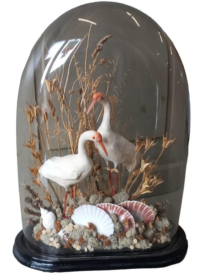 EergisterenLinnenkastjeDeinze - Stolp glas met inhoudOude stolp met lederen kinderschoenen,parelmoer verrekijker ,kerkboekje , muzieknoten bladeren zeer mooi in landelijke of victoriaanse stijl .Ophalen