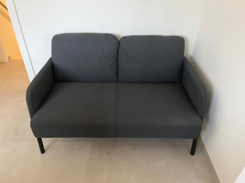- Leuke grijze zetel voor 2 personenDeze zetel is geschikt voor 2 personen. Hij neemt weinig plaats in, zit heel goed en is in perfecte staat. Kleur : donkergrijs met zwarte poten. De afmetingen staan op de laatste foto. Ik verkoop ditOphalen