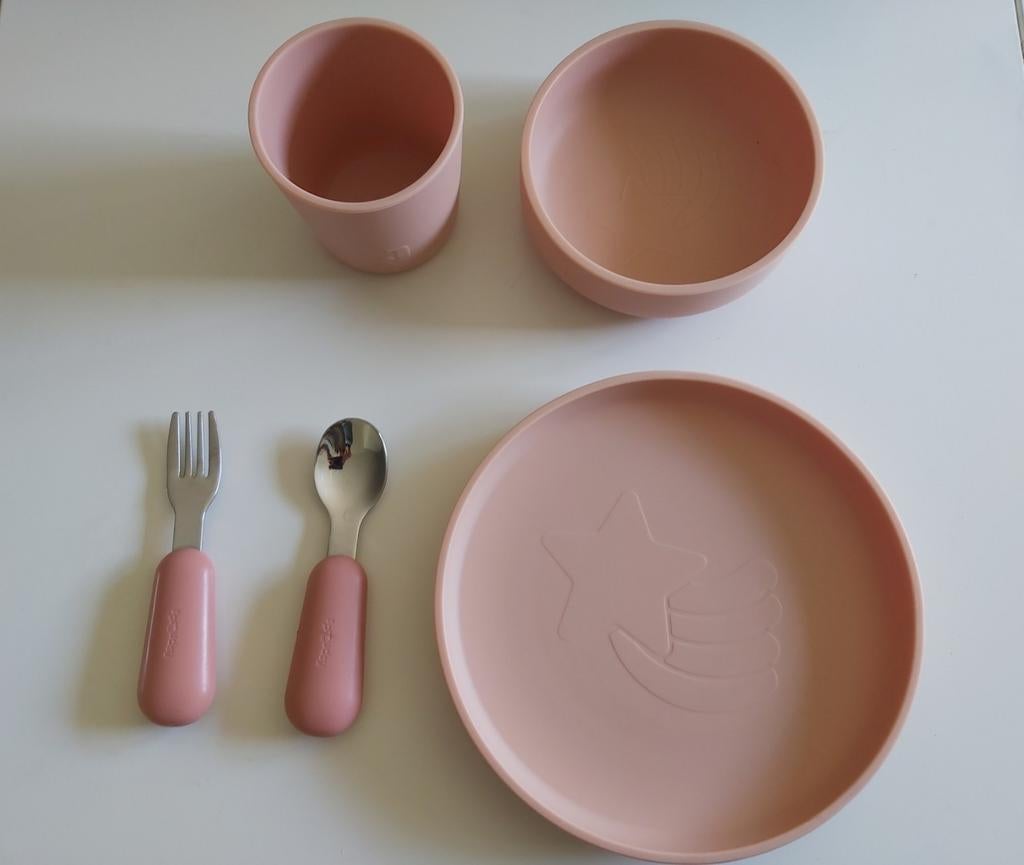 - Eetbestek baby/peuterBord, kommetje, beker, lepel en vork. Het bord en kommetje hebben onderaan een zuignap. Afhalen in temse of rupelmonde.Ophalen