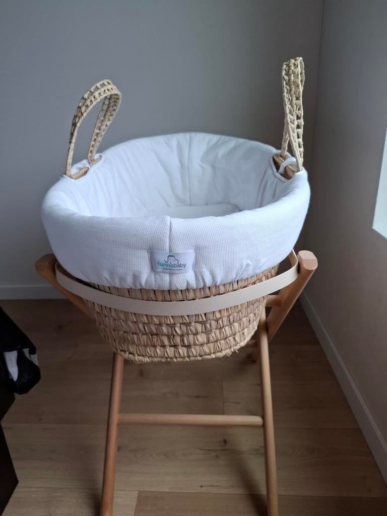 31 mrt 26Aaricia xRillaar - Babywiegje ChildhomeMoses mand met ecru bekleding (verwijderbaar om te wassen) en matrasje + staander in beukenhout. Beide van childhome en in perfecte staat. Nieuwprijzen: 159€ + 109€. Staander kan uit elkaarZo goed als nieuw Ophalen