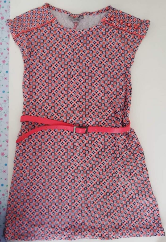 VandaagKarolienTemse - Jurkje, gilet, haarspeldjes maat 110-116Ensemble van jbc bestaande uit: jurkje met rode riem - maat 116 bijpassend gilet - maat 110 twee bijpassende haarspeldjes van lief! Reserveknoopjes lengte vanaf schouder gemeten: 58cm. Zeer goede staGebruikt Ophalen of Verzenden