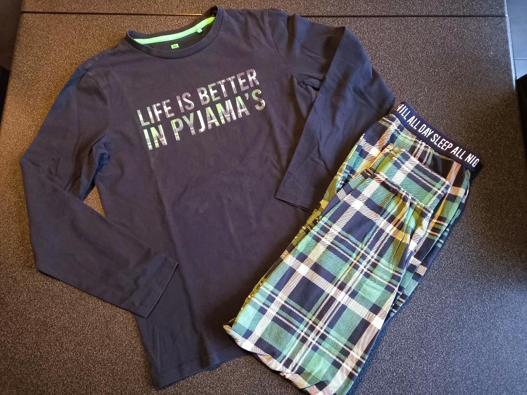 8 apr 26ElkeVRZele+Deel Lokeren - Jongenskleding – Pyama – maat 146/152Donkerblauwe pyama ‘life is better in pyjama’s’ van het merk we – maat 146/152 af te halen in merksplas of evt. Verzendkosten voor de koper.Gebruikt Ophalen of Verzenden