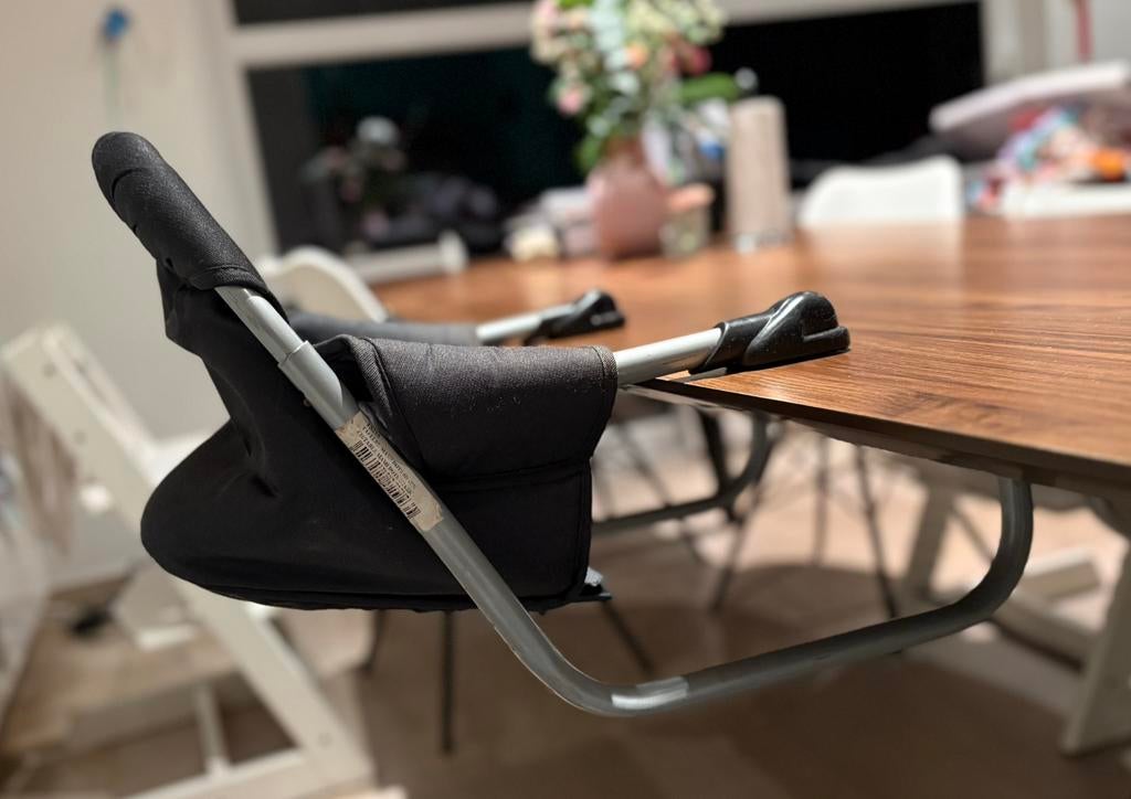 19 feb 26SylviaHasselt - Hangstoel baby voor aan tafel - PericlesMerk: pericles kleur: donkergrijs opvouwbaar, makkelijk te transporteren en monteren let wel: enkele bruine slijtagevlekken aan de binnenkant van de bekleding (zie laatste foto)Gebruikt Ophalen