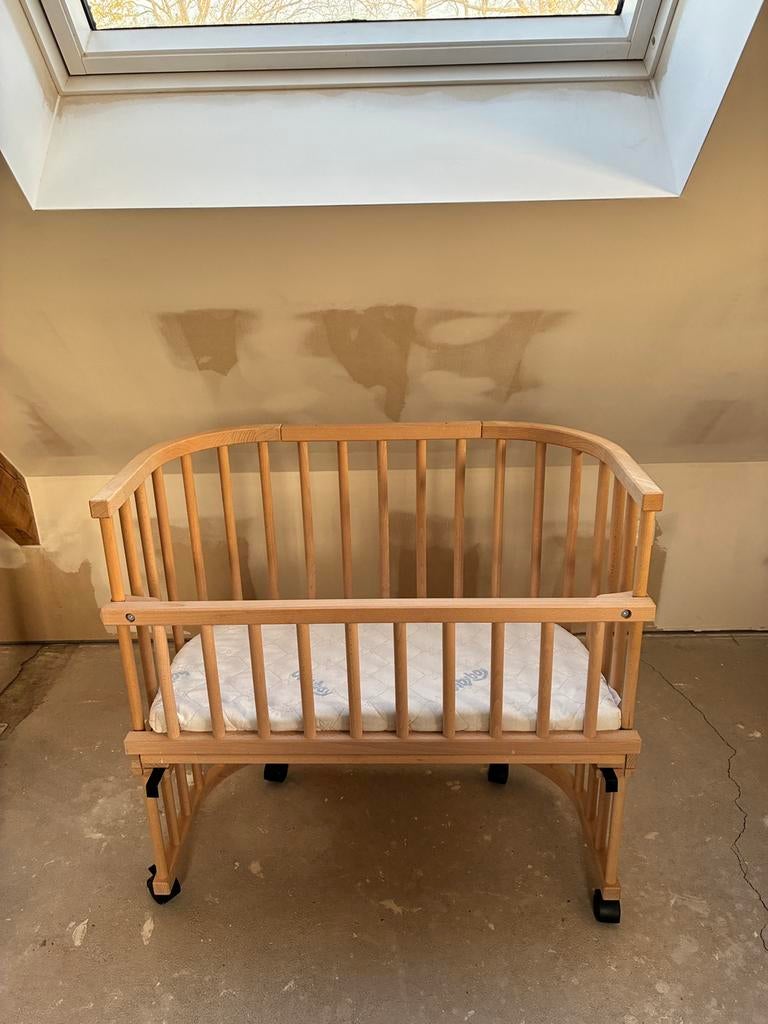 - Babybay cosleeper hout naturelBabybay cosleeper (natural wood untreated) in zeer goede staat met wieltjes, matrasje, 2 hoeslakentjes en stoffen bedomranderZo goed als nieuw Ophalen