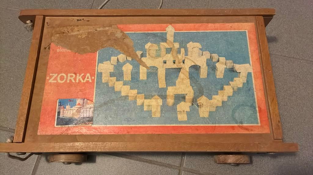 30 mrt 26Leni De PotterWannegem-Lede - Houten blokkenkarVintage houten blokkenkar op wielen en met een trekkoord. Volledige inhoud. Proper. Deksel box wat verkleurd.Gebruikt Ophalen