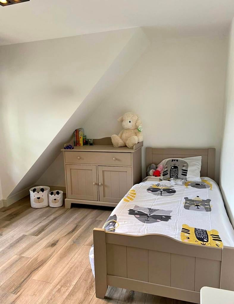 4 nov 24hebeTessenderlo - Slaapkamer set perfect voor de groeiPrachtige, tijdloze kinderkamer van childwood, bestaande uit een meegroeibed, een commode en een ruime 3-deurskast. Het meegroeibed is geschikt vanaf de geboorte tot ongeveer 10 à 12 jaar, waardoor heZo goed als nieuw Ophalen