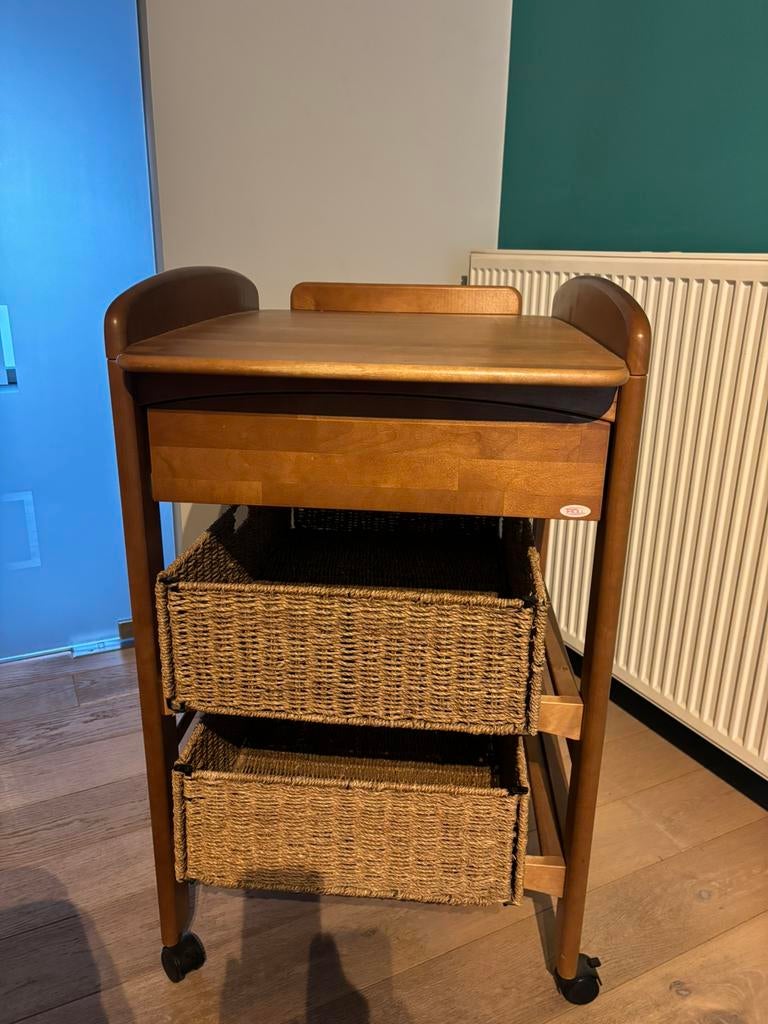 VandaagBartPWLeuven - Verzorgingstafel met schuif en 2 rieten mandenVerzorgingstafel met schuif en 2 rieten manden, veel bergruimte zonder verzorgingskussen, enkel gebruikt bij de grootoudersGebruikt Ophalen