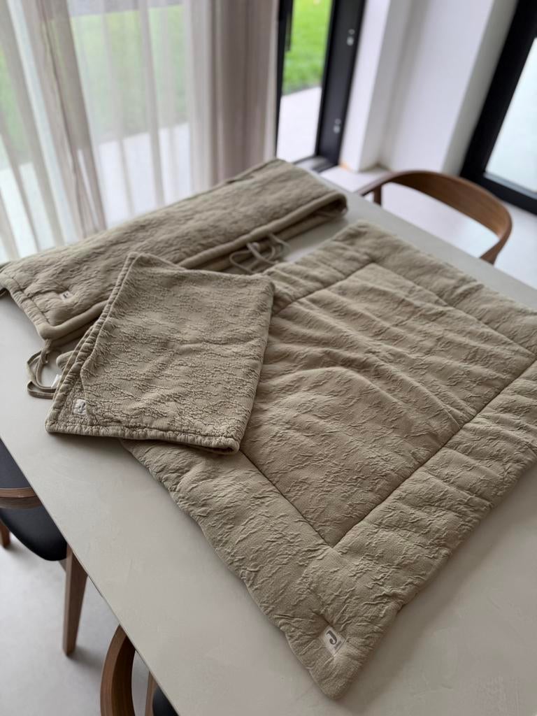 - Set Jollein boxkussen + boxomrander + dekentje.Set jollein boxomrander+ boxkussen + dekentje. Dekentje: 75x100 cm boxomrander: 180x30 cm boxkussen: 75x95 cmGebruikt Ophalen