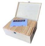 Houten speelblokken in houten kist
