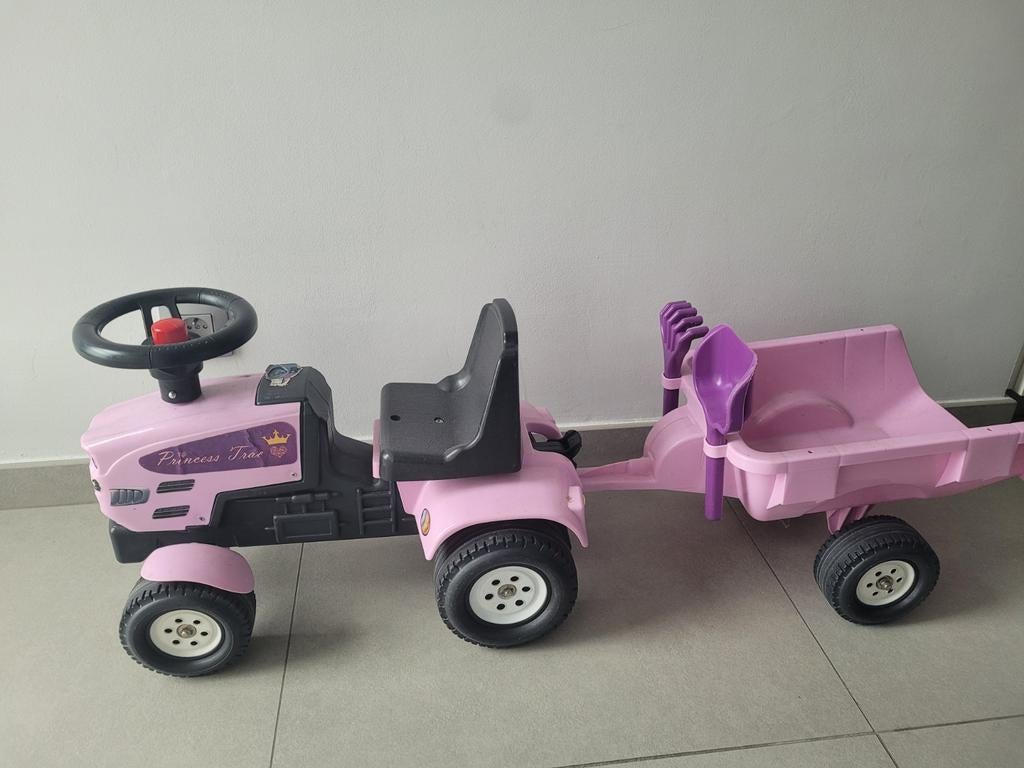 8 apr 26lissaEssen +Deel KalmthoutLooptractorOphalenRoze looptractorEssen +Deel Kalmthout8 apr 26 - Looptractor met voorlader, graafarm en aanhangerGrote en stevige looptractor met werkende voorlader, graafarm achteraan en afneembare aanhanger. Het kind kan erop zitten en zelf sturen, ideaal om buiten te spelen in de tuin of zandbak. Trappen is nGebruikt Ophalen