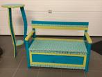 - opbergbank hout + staantafeltje houtVintage opbergbank hout met stof overtrokken + staantafeltje. Vintage jaren ‘1987. Goede staat. Afmetingen zie foto’s. Enkel afhalen in meeuwen oudsbergen wegens grootte.Gebruikt Ophalen of Verzenden