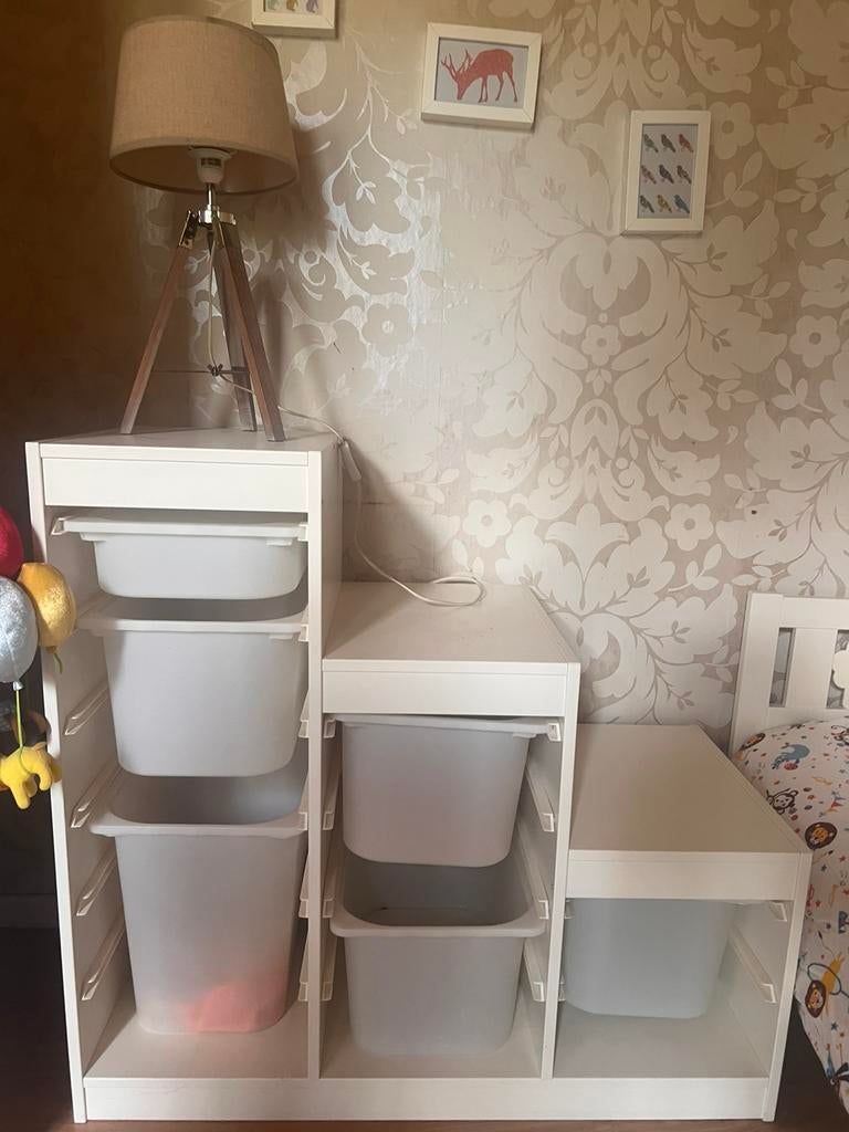 Eergisteren123kinderwinkel NLPoppel - Ikea Trofast trappenkast incl bakkenWitte opbergkast trofast met bijhorende opbergbakken. Geen deksels. In mooie staat met minimale gebruikssporen. Diepte: 44 cmhoogte: 94 cmbreedte: 99 cm ophaling in malle. Vaste prijsZo goed als nieuw Ophalen