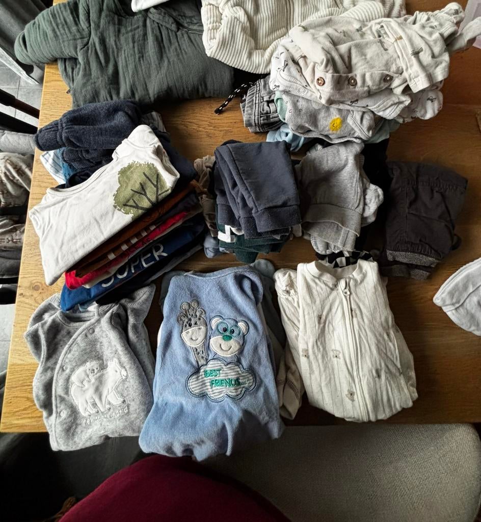 12 apr 26Hanne Van eyndtLille - Pakket babykleding jongen maat 50-56 (40stuks)Compleet pakket babykleding maat 50-56. 40 Stuks, tshirt, broekjes, trui, jas, pyjamas, bodies, nuts, kousen... Allemaal van degelijke merken zoals: hema, next, h&m, noppies, laredoute... AfhalenOphalen of Verzenden