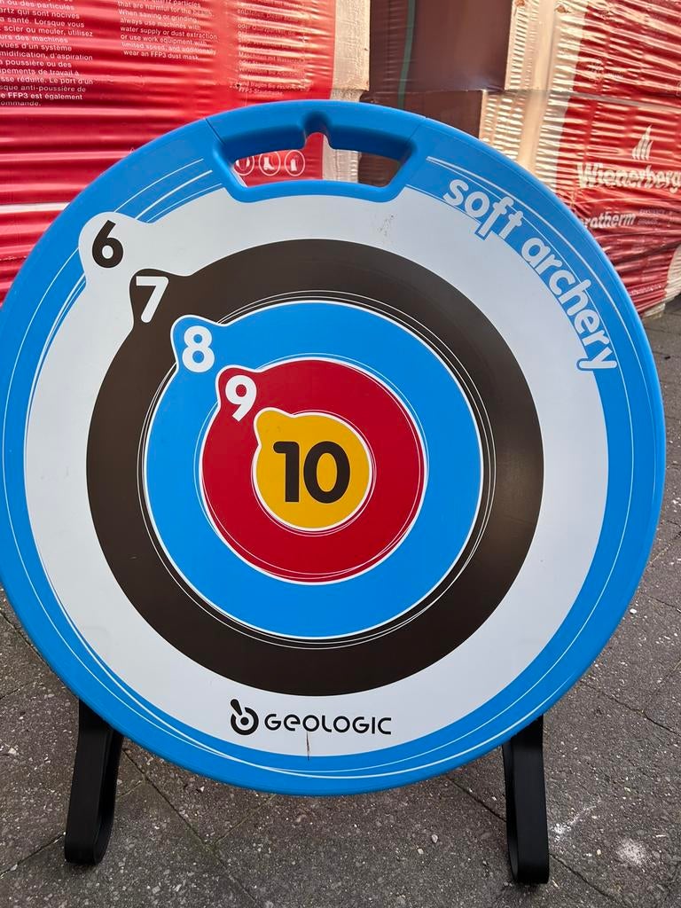 25 nov 24MosaïqueTournai - Schietschijf en boogTarget op voetje met pijl en boog. Ophalen in roosdaal gent eekloZo goed als nieuw Ophalen