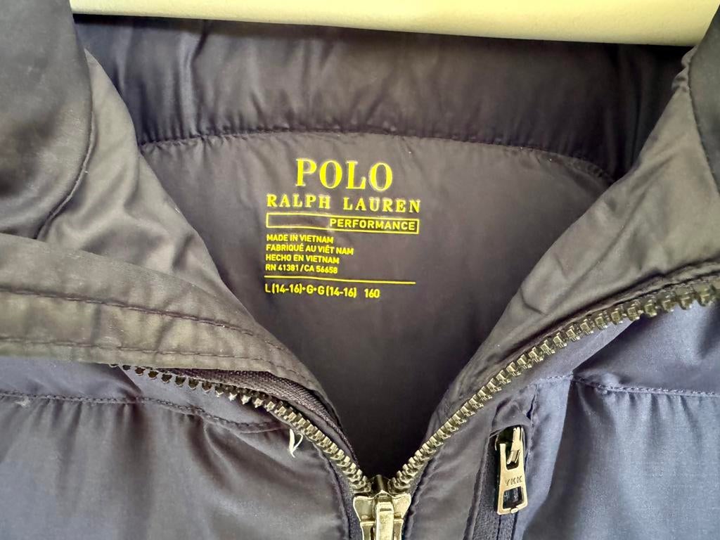 GisterenBartLubbeek - Polo Ralph Lauren Performance donsjack - Blauw 14-16 jaarComfortabel en warm donsjack van polo ralph lauren performance in het blauw. Het jack heeft een capuchon en is ideaal voor koudere dagen. Er is een kleine herstelling aan de mouw (zie foto), maar verdGebruikt Ophalen of Verzenden