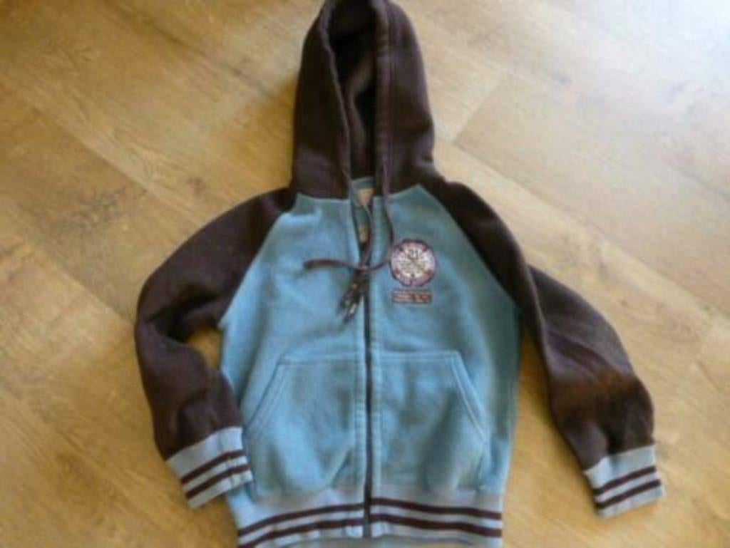 - fleece trui / jas van River Woods maat 128Trui / gilet / jas in goede staat maat 128 merk : riverwoods kleuren : blauw met bruin fleeceGebruikt Ophalen of Verzenden