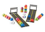- Houten autobaan + 3 houten auto'sHouten autobaan: zet de auto's startklaar bovenaan, en daar gaan ze!Zo goed als nieuw Ophalen
